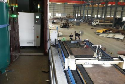 走訪空隙我們在金榜金屬加工廠內看到傳說中西南地區最大的折彎機(14米長,4000噸)、更看到了專門定制的普睿瑪18×3米大幅面激光切割機,該設備作為目前成都唯一一臺超長大幅面坡口切割機,配備了創鑫15kW激光器。由于工藝研究全面、激光器性能穩定,金榜金屬加工廠走出了單一切割下料的微利黑洞,增加更多超額利潤。據廠里技術人員反饋,為滿足切割需求,他們特別定制了超長25米鎧纜,并為15kW激光器配置了空調房,解決成都地區潮濕悶熱給激光器帶來的影響,確保他們的“印鈔機”24小時不間斷生產。