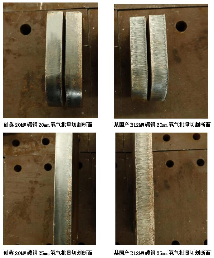 使用氧氣切割碳鋼,24小時生產情況下,20kW比12kW更穩定,斷面無掛渣,質量明顯提升,無須二次加工。