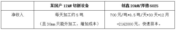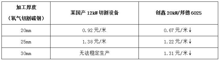 與某國產品牌12kW相比,20kW切割20/25/30mm,加工成本降低11%~27%,且能穩定加工30mm板材。
