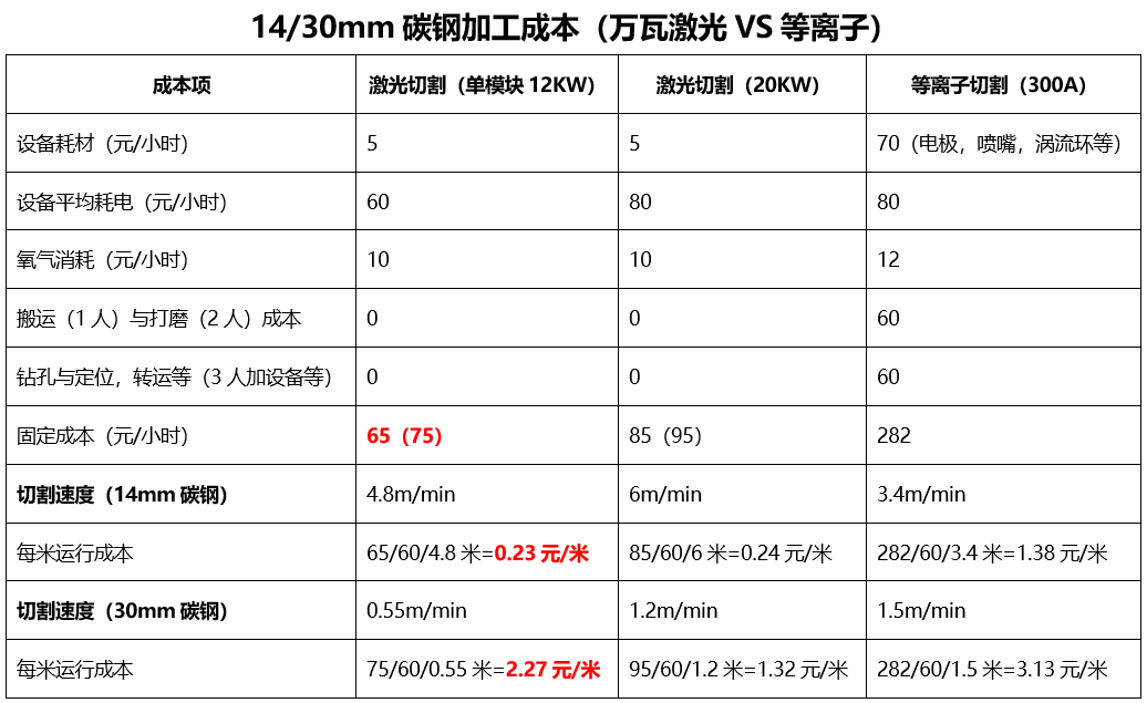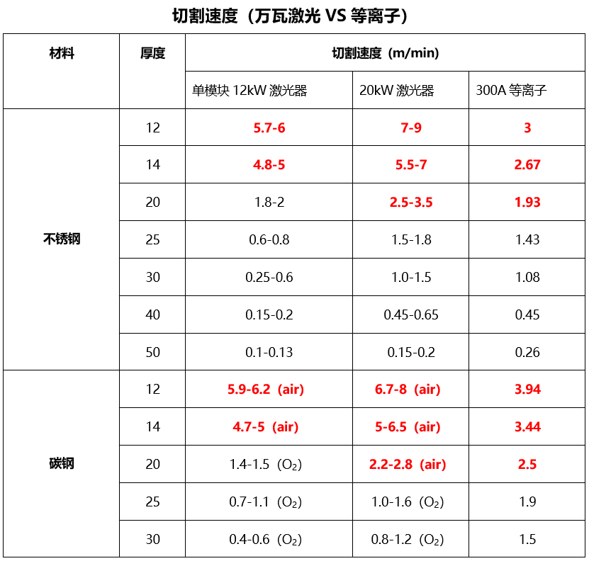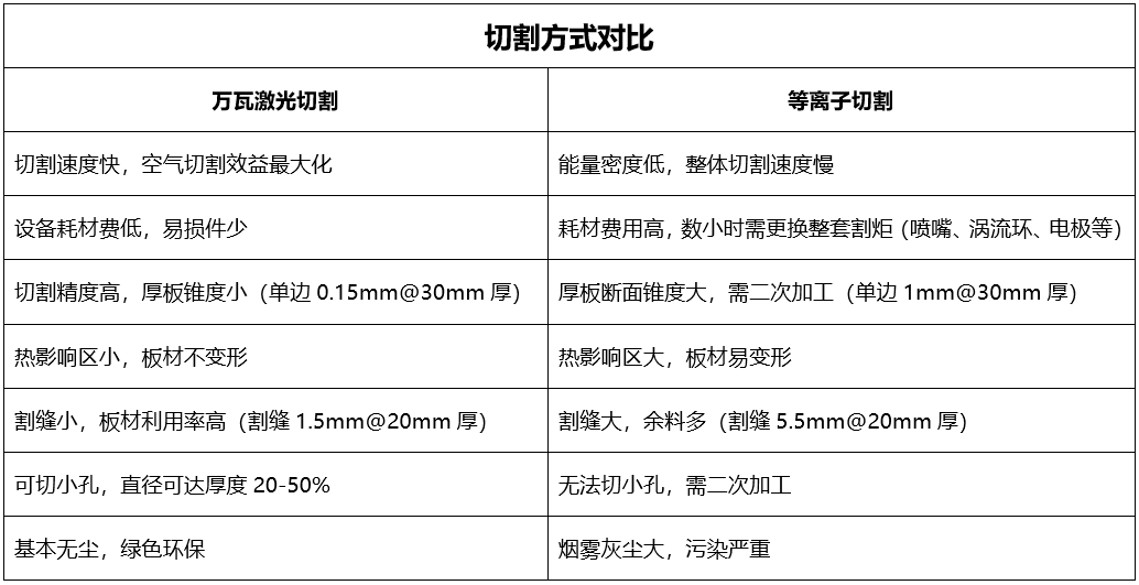 但是,在厚板切割方面,千瓦級激光器的加工厚度依然存在局限,以致厚板切割依舊需要依靠等離子切割。萬瓦激光推出后,可切板材厚度持續突破,加工效率、成本、效果等各方面也都優于等離子切割等傳統切割方式,瞬間捕獲大批終端用戶的“芳心”。