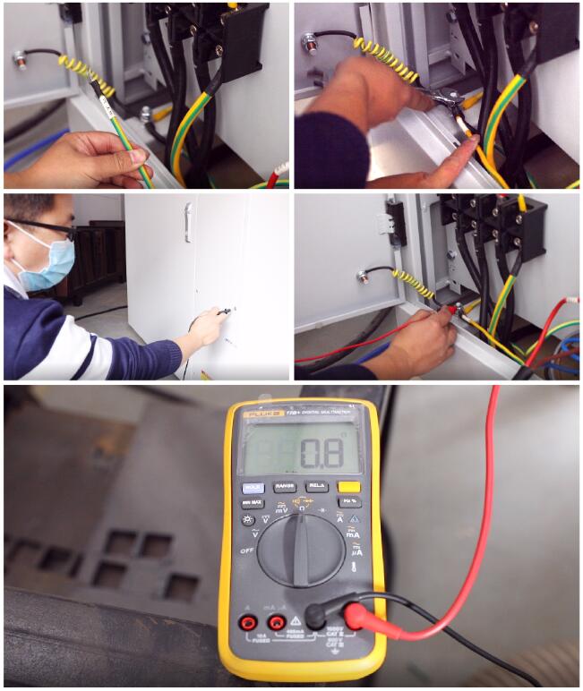 2.把激光器PE線與穩(wěn)壓器的地線接起來,用萬用表測量激光器外殼與穩(wěn)壓器地線之間的電阻值,小于1歐則接線合格;同時,把機(jī)床和機(jī)床控制柜的PE線與穩(wěn)壓器的地線接起來,用萬用表測量機(jī)床和機(jī)床控制柜外殼與穩(wěn)壓器地線之間的電阻值,小于1歐則接線合格。