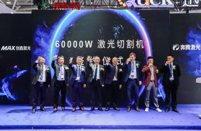 隨著中國(guó)光學(xué)學(xué)會(huì)激光加工專委會(huì)主任張慶茂、奔騰激光集團(tuán)董事長(zhǎng)馬丁諾、奔騰激光集團(tuán)總裁吳讓大、奔騰激光集團(tuán)輪值CEO徐俠、創(chuàng)鑫激光董事長(zhǎng)蔣峰、創(chuàng)鑫激光銷售總監(jiān)武華鵬等一眾領(lǐng)導(dǎo)上臺(tái)啟動(dòng)按鈕,60000W激光切割機(jī)正式發(fā)布。