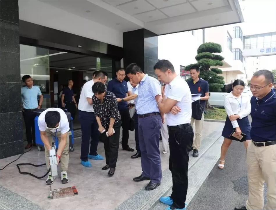 ???臨走前郭區長觀看應用中心員工演示激光除銹