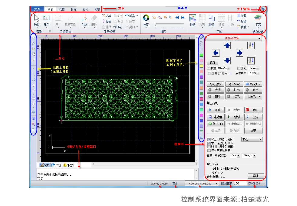 控制系統是激光切割設備的重要組成部分,它把用戶設計的圖形圖像文件經過一系列的處理,最終變成電機和激光器的控制指令,是設計圖和機械交流的中心紐帶。