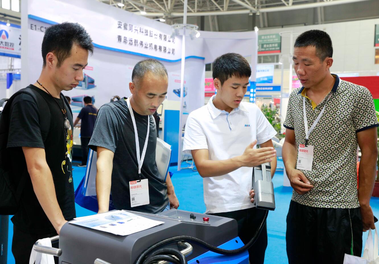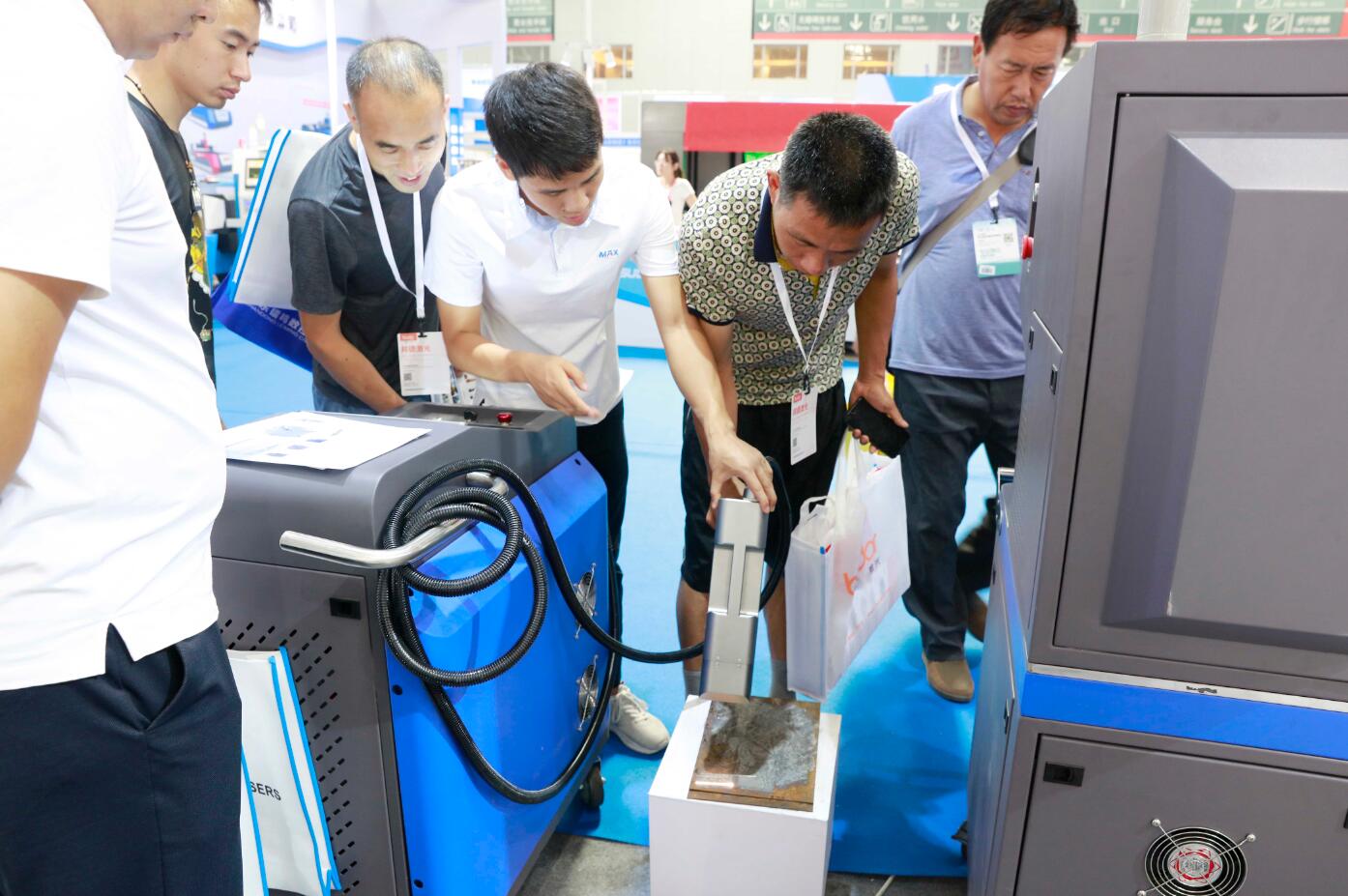 切割、打標、清洗除銹、焊接、3D打印等都是激光應用的重點領域,其中激光清洗除銹以髙效、快捷、安全、成本低、不損傷基體、環(huán)保無污染等優(yōu)勢,廣泛用于核電部件維修的快速清理;航空航天兵器,船舶生產(chǎn)或維護過程中的氧化物處理,除漆,除銹;金屬表面除銹清洗等。展會現(xiàn)場創(chuàng)鑫激光展出了一臺激光清洗除銹設備,并安排了工作人員現(xiàn)場為客戶演示除銹過程及效果。