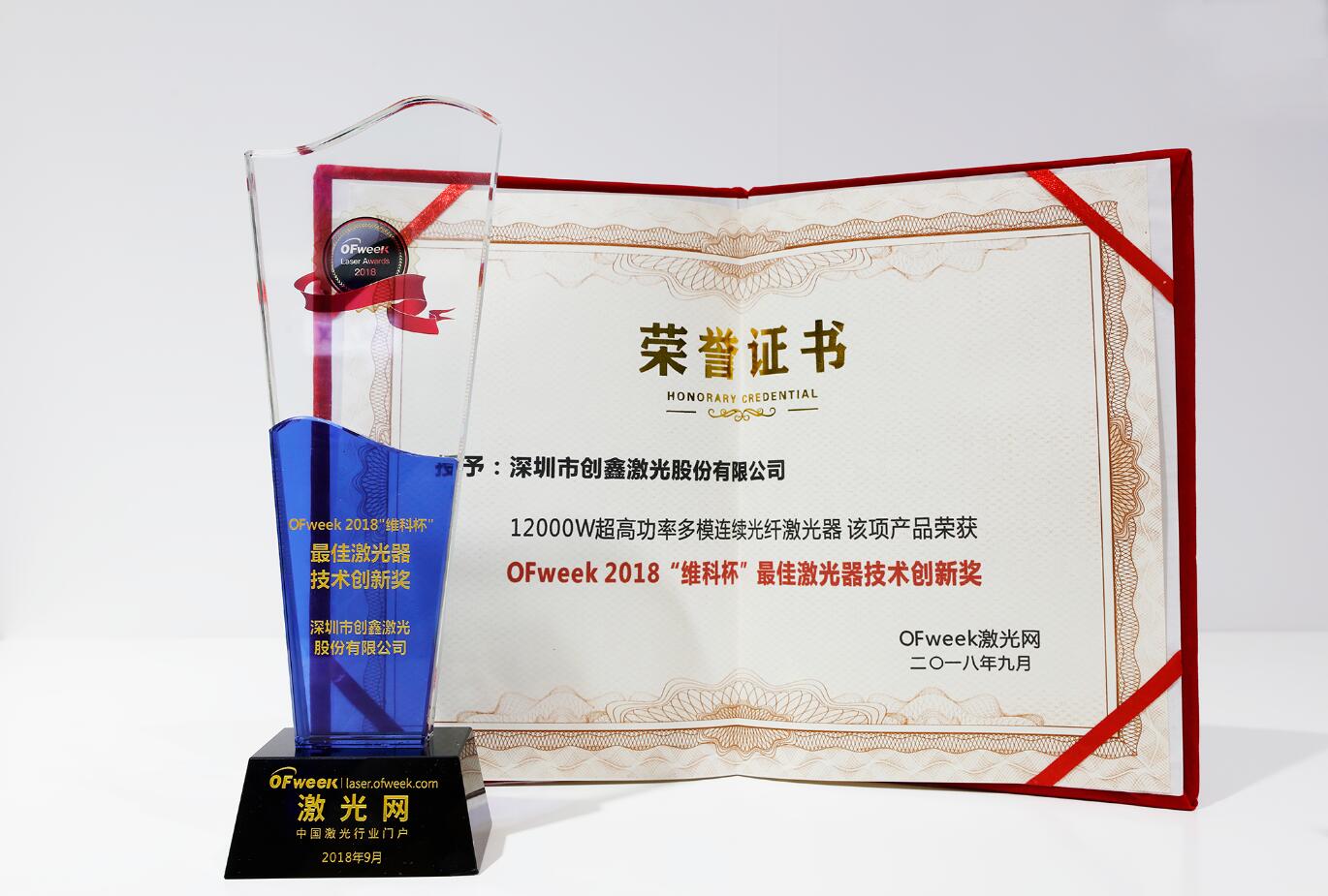 經歷全網投票、專家組評、組委會綜合評的激烈競逐,創鑫激光憑12000W高功率多模連續光纖激光器榮獲“維科杯”最佳激光技術創新獎。