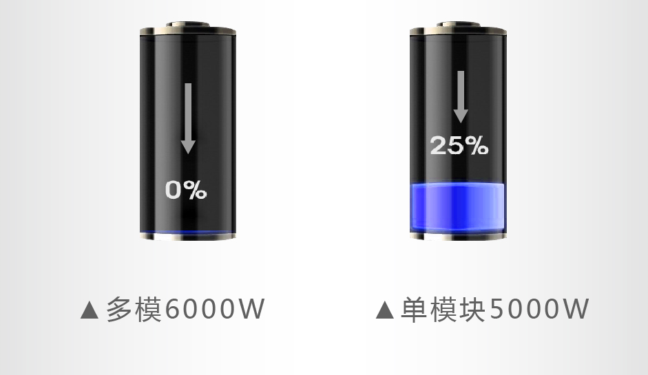 與多模6000W相比,單模塊5000W的體積減小76%,重量減輕55%。