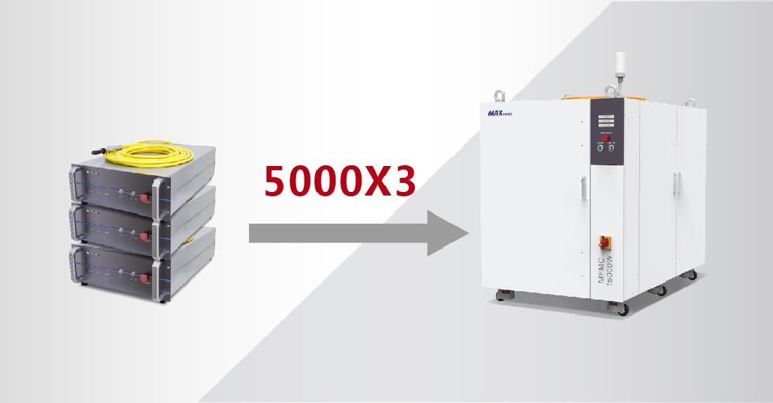 單模塊功率越大,在集成萬瓦超高功率激光器時所需的模塊更少,結構更緊湊,并且合束規格越小,合束效率越高,性能更穩定。以15000W超高功率光纖激光器為例,只需要3個單模塊5000W即可合束而成。