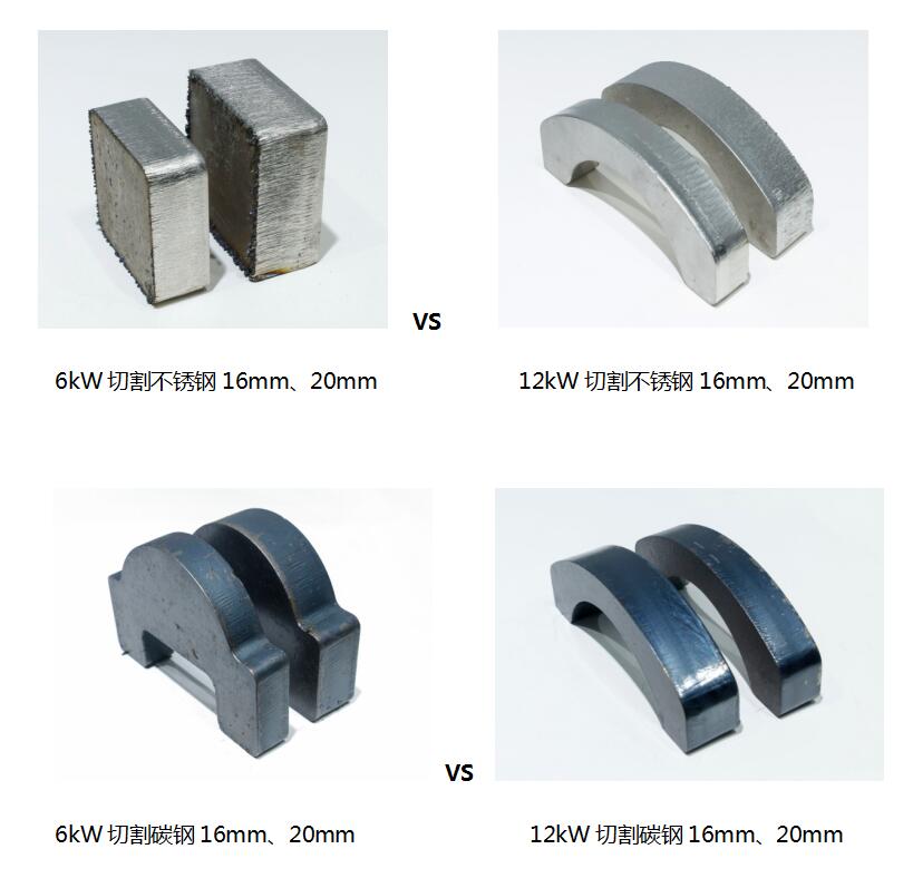 從測試的切割速度得出: 切割碳鋼時,12kW激光切割的速度比6kW激光切割的切割速度快87%—493%;切割不銹鋼時,12kW激光切割的速度比6kW激光切割的切割速度快163%—289%;切割鋁時,12kW激光切割的速度比6kW激光切割的切割速度快150%-213%。