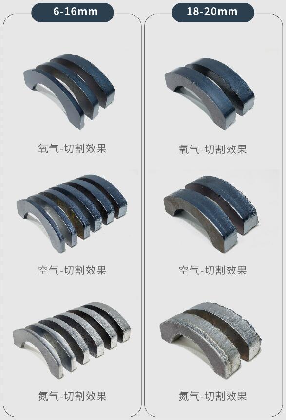 2.碳鋼6-20mm厚板,12KW切割機使用空氣比氮氣切割效率提高11%-27%。