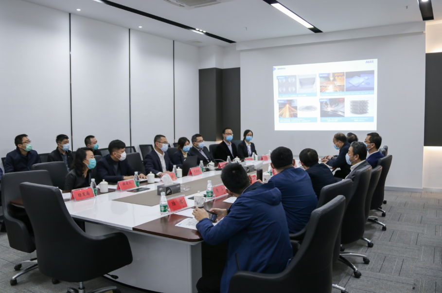 參觀結束后,領導團一行與蘇州創鑫激光黨總進行座談交流,黨總介紹了創鑫激光的技術、產品、市場等整體發展情況,以及蘇州創鑫激光產業園工期進度及未來發展規劃。目前,蘇州創鑫激光產業園主體結構已經封頂,后續工期也在有條不紊的進行當中。建成之后將進一步擴大創鑫激光中高功率和超高功率激光器的產能,同時為長三角激光產業鏈注入新動能。