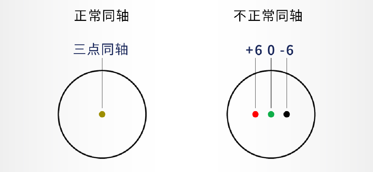 (2) 同軸測試:按下圖標準判斷噴嘴出口孔與激光束的同軸度